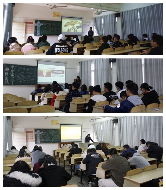 宪法是国家的根本大法,是治国安邦的总章程,是党和人民意志的集中体现。面对此次团课主题,很多班级的侧重点都各有不同。金融5171班通过PPT的形式向同学们讲述了宪法对统治权、对法制的作用及表现形式;法学5191班王铂同学说:“坚持依法治国首先要坚持依宪治国,坚持依法执政首先要坚持依宪执政。我国现行宪法是在党的领导下,在深刻总结我国社会主义革命、建设、改革实践经验基础上制定和不断完善的,实现了党的主张和人民意志的高度统一,具有强大生命力,为改革开放和社会主义现代化建设提供了根本法治保障。”此外,为使同学们认真学习团课内容,国贸5191班和国贸5181班团支书鼓励同学们在团课期间将手机上交。同,其他班级通过播放相关视频和演讲PPT等方式进行学习。
