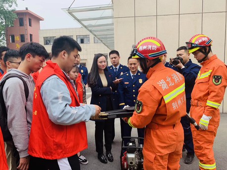 本网讯 4月23日上午,经法系志愿者服务队携手荆州人民广播电台荆州之声《公益荆州》栏目组,走进荆州市消防救援支队中山中队开展感恩志愿服务活动。志愿者为消防战士们送上事先准备好的苹果,寓意消防战士们每次执行任务都能顺利平安。消防战士带领志愿者们参观执勤车辆、车库、宿舍等地,为志愿者们介绍消防车及各类消防装备,带领志愿者体验消防作业升降机,并重点介绍了灭火器的正确使用方法。通过此次活动,志愿者们不仅增长了见识,更体会到消防官兵工作的艰辛和危险,从中学会感恩,懂得珍惜。通讯员 贾子为 王震 杨方金 摄影报道