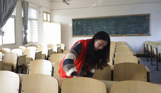 本网讯(通讯员 邱媛丹)为了树立和巩固同学们的主人公意识,为同学们美化教学楼、培养老员工良好的卫生习惯,营造一片文明健康的学习氛围。11月23日上午,经法系青年志愿者对二教201、202、203、204、205、206及四教300教室进行了深度清洁。