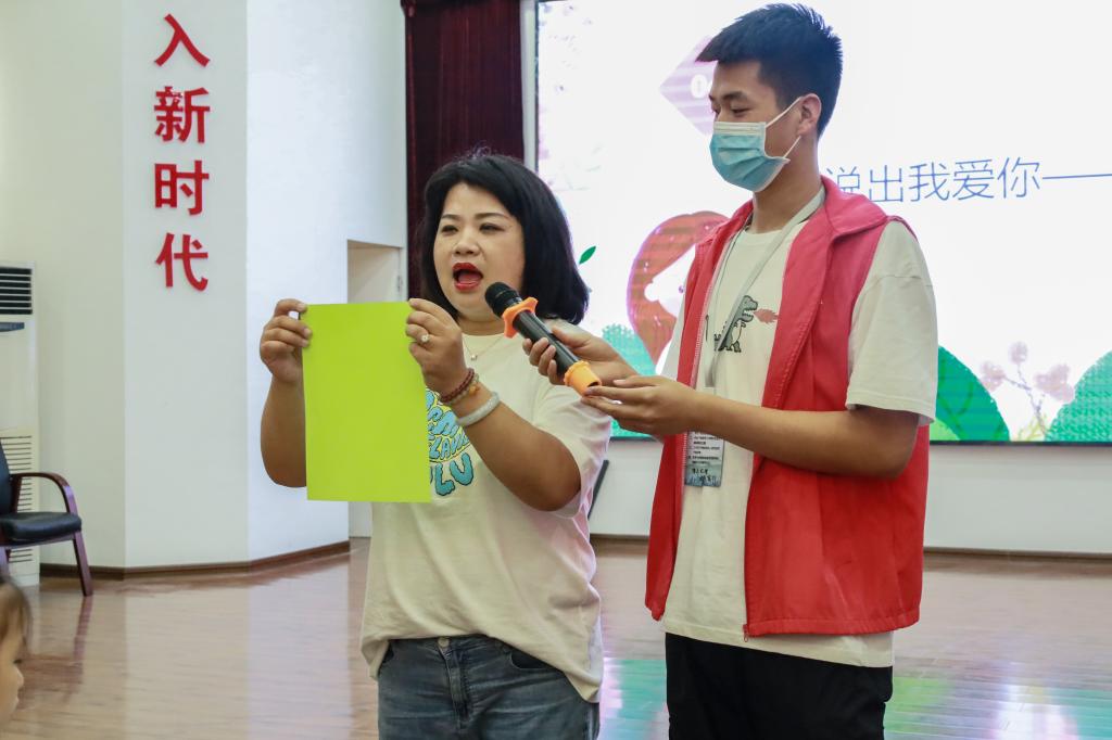 活动开始,杨书记围绕母亲节的由来、我与母亲的故事、小测试以及“大声说出我爱你”手工活动四个环节展开。首先,杨书记引用“望儿山”的故事绘声绘色地向小朋友们介绍关于母亲节的故事。随后,她又邀请小朋友们分享自己与母亲的故事,表达对妈妈的爱与感恩。接着,杨书记问小朋友们几个有关于妈妈的问题,例如妈妈的生日在什么时候、妈妈喜欢穿什么颜色的衣服、妈妈喜欢做什么。杨书记又带领小朋友们向妈妈做出庄重承诺:“要听妈妈的话,认真学习知识,努力掌握本领,让妈妈放心。”最后,是手工劳动环节,要求小朋友们做一把“爱的小伞”来表达对母亲的爱。在杨书记耐心地指导下和青年志愿者的帮助下,小朋友们和母亲妈妈一起携手完成“爱的小伞”。手工制作完成后,小朋友们将自己的劳动成果上台展示。
