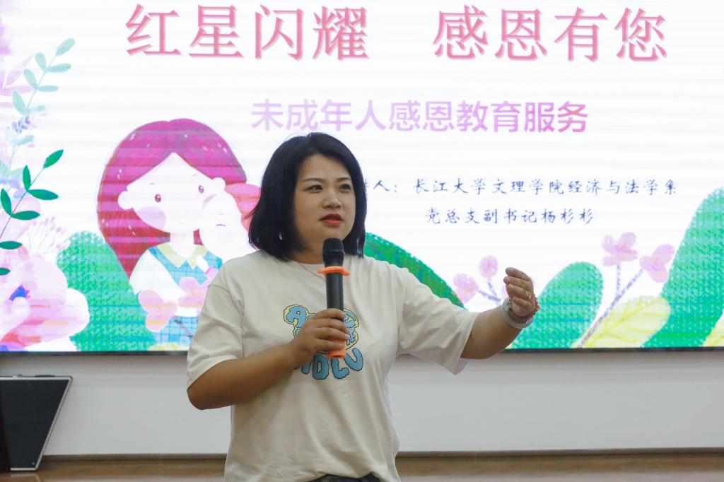本网讯(见习记者 帅赟 陈燕妮)58日,正值母情节到来之际,经法系青年志愿者走进新风社区新时代文明实践站——儿童之家开展以“红星闪耀,感恩有你”为主题的未成年人感恩教育活动。此次活动由党总支副书记杨杉杉老师带队,经法系员工会志愿者参加活动。