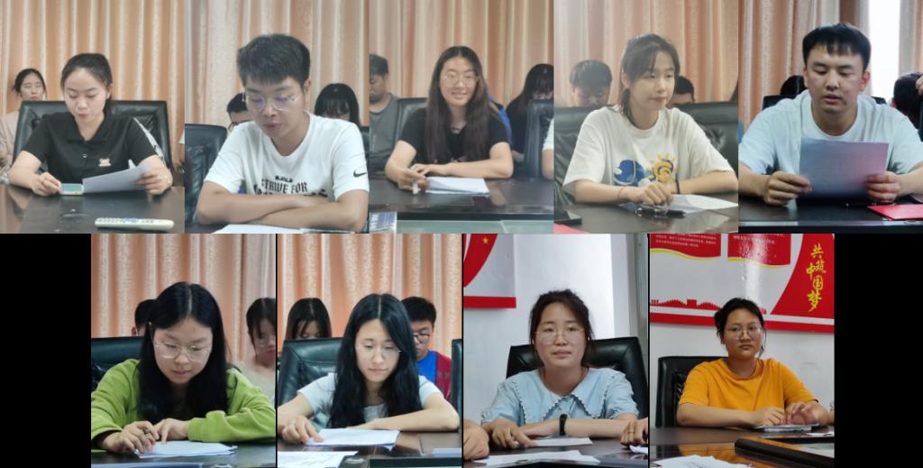拟转正的十名预备党员同志依次发言(上排:林洁雅、郝智杰、李瑞文、刘珺琛、石烨下排:周红、唐宇晴、胡冰冰、侯依然)