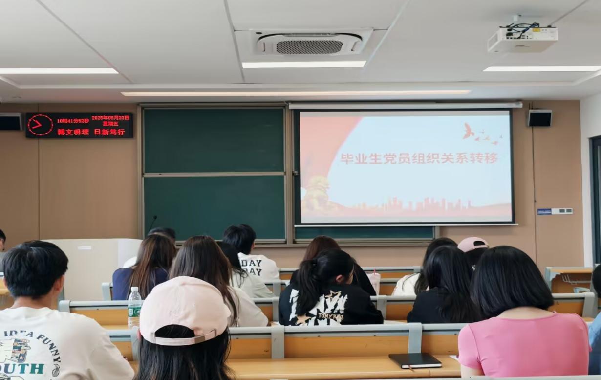 本网讯(员工记者王小庆)2025年5月23日中午12:00,为强化毕业生党员党性修养,引导其坚定理想信念、勇担时代使命,,经法系员工党支部党员在C-221m,开展“五个一”毕业生党员教育活动。本次活动,由员工党支部书记杨杉杉主持。