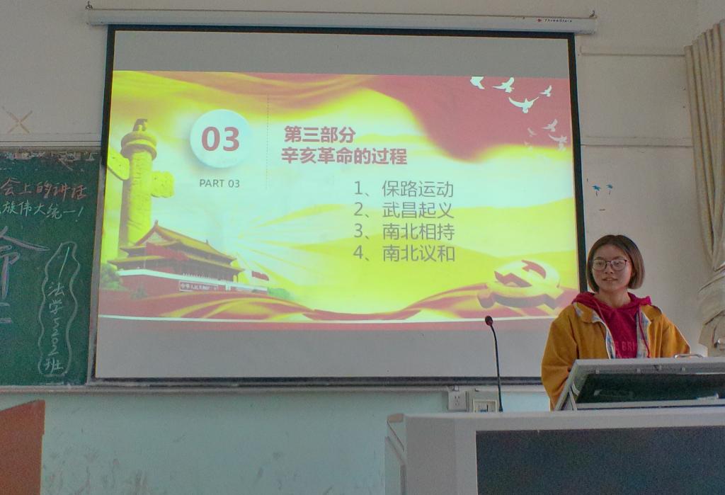 各班对主题团课的学习都取得了较好的效果。国贸5201班主持人激情演讲,引领同学们对“为什么要弘扬和传承辛亥革命精神”进行深入思考,同学们积极回答主持人的提问,分享各自的看法;法学5202班通过对比今天与一百多年来中国社会发生的深刻变化,结合当代人民的幸福生活,给同学们讲通了辛亥革命的伟大历史意义。