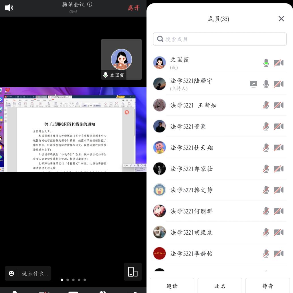 此次班会的开展,不仅强化了经法系全体员工的集体意识,提高了安全防范意识,更凝聚了全体经法学子同心战疫,共克时艰的信心和决心!大家齐心协力,为创造平安而美好的校园生活共同努力!