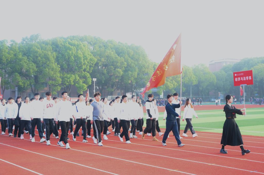 19日上午8时,运动会开幕式在西校区运动场降重举行。开幕式上经济与法学系组成的鲜花方队和运动员代表队,迈着整齐而坚定的步伐,喊着嘹亮有力的口号,以饱满的精神和昂扬的斗志,展现出我系莘莘学子的青春与活力。