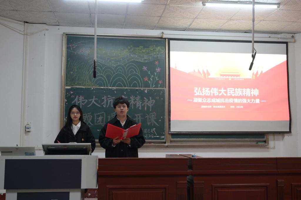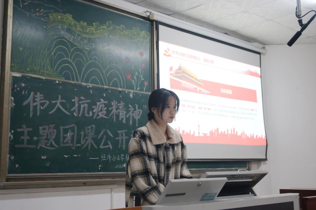 本网讯(见习记者:李欣怡 田琼钕 夏雪飞)为了弘扬我国伟大的抗疫精神,做好团课模范作用,经法系团总支于11月30日晚7时在4教300开展以“伟大抗疫精神”为主题的团课公开课。经法系党总支副书记杨杉杉老师,辅导员卢佳智老师参加本次团课。团课由组织部干事韩夏美、秘书处干事陆疆宇主持,组织部干事经济类5221班涂诗怡担任主讲人。参与本次团课的有经法系员工会全体成员以及各团支部团支书、组织宣传委员参会。