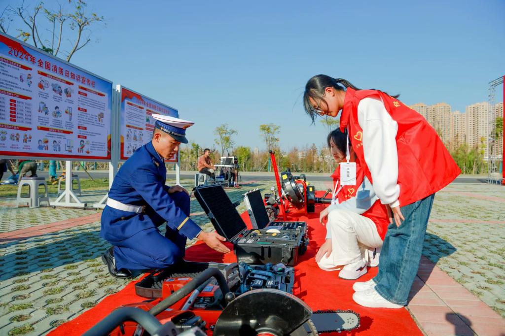 活动伊始,消防员们结合实际案例,讲述了火灾的成因、预防措施以及在火灾发生时应如何正确应对。以生动的案例分析和科学的理论讲解,让志愿者们通过消防演练深刻认识到消防安全意识的重要性以及日常防范工作的必要性。在观摩环节,消防队员们详细展示了各类消防装备和器材。从高效的灭火器具到精密的救援设备,每一件工具都承载着消防战士们在危急时刻拯救生命的重任。在消防员的带领下,志愿者们近距离接触到了各种先进的消防设备,志愿者们通过亲身体验和实际操作,学习了正确的灭火技巧,深入了解了相关设备的工作原理和操作方法,切身体会到了消防的重要性与专业性。