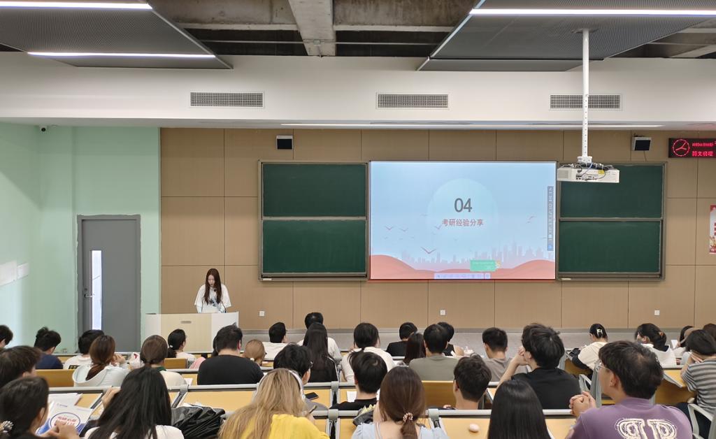 随后,金融S5231班的李思思结合自身考研经历,倾囊相授备考经验。在英语学习上,她建议同学们制定每日单词背诵计划,通过精读真题文章提升阅读与写作能力;专业课方面,要梳理知识框架,结合目标院校的考试大纲有针对性地复习,多做练习题巩固知识点;在导师选择环节,她分享了收集导师信息的渠道与沟通技巧,提醒同学们早做规划、主动争取。李思思真诚而实用的分享,让在场同学受益匪浅。