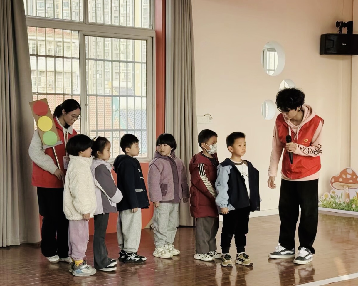 本网讯(见习记者:谭钱鑫)为深入贯彻落实“让法治种子在青少年心田生根发芽”的育人理念,推动规则意识与法治精神在幼儿心中扎根,12月5日下午,经法系组织梦想起航志愿者服务队走进梅园幼儿园,开展了一场以“小手拉大手,规则齐遵守”为主题的法治启蒙实践活动。