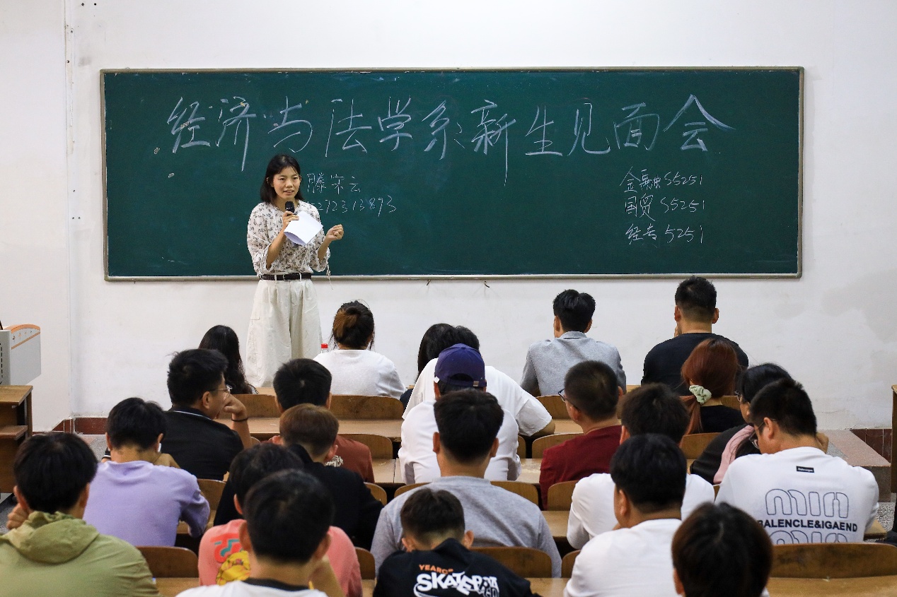 为助力2025级新生快速适应老员工活,构建师生高效沟通桥梁,9月7日下午,经济与法学系于主校区、城中校区同步举行新生见面会。系党总支书记辛裕,常务副主任罗明,副主任周密,党总支副书记杨杉杉亲临指导,全体新生辅导员、班主任及2025级新生共同参与。主校区会议由辅导员卢佳智主持,城中校区由辅导员滕宋云主持,共启新生成长新篇。