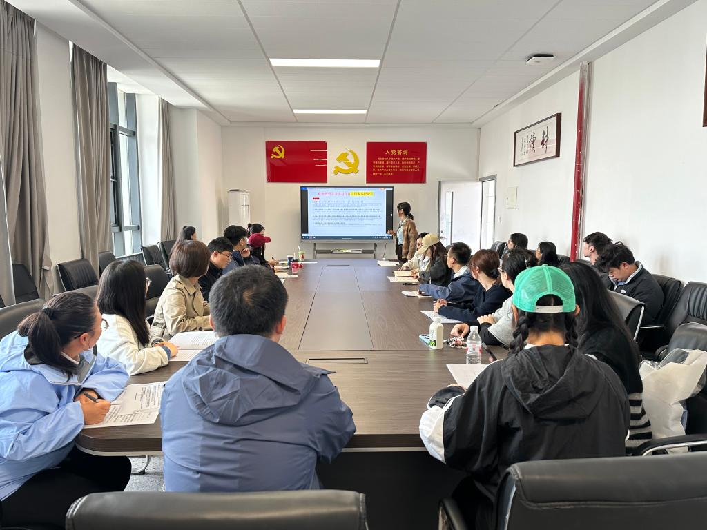 在联系实际、交流研讨环节,围绕“习近平总书记在庆祝中华人民共和国成立76周年招待会上的重要讲话精神,谈一谈如何立足岗位,以只争朝夕、永不懈怠的奋斗精神,服务中国式现代化建设。”这一主题,党总支副书记梅曼曼表示,对高校教师而言,“只争朝夕”是时不我待的行动力,要求我们在人才培养、科学研究上快马加鞭;“永不懈怠”是坚韧不拔的战略定力,要求我们坚守教育初心,为党育人、为国育才。