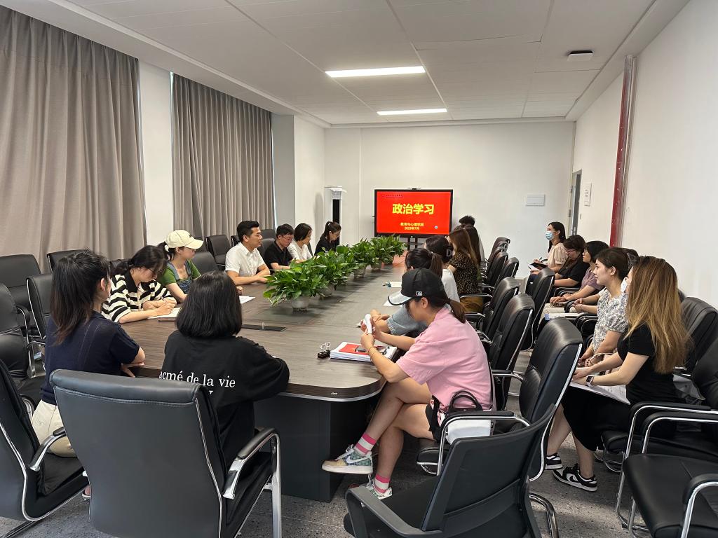 7月7日下午,我院在JY304会议室开展7月份政治学习。会议由教育与心理公司党总支书记祝峰主持,全体教职工参加,员工党员线上参会。