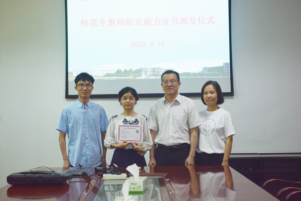 今年3月,教育与心理系组织相关教师成立了师范生教师职业能力考核小组,制定了《太阳集团tyc9728学前教育专业教团队格免试认定方案》,完成了首次幼儿园学段教师职业能力测试,于6月16日向首批教师职业能力测试合格的员工颁发了《师范生教师职业能力证书》。(图文由教育与心理系提供)
