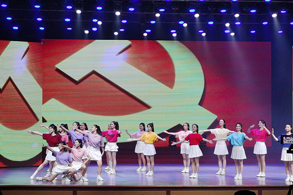 为庆祝中国共产党成立102周年,回顾党的百年光辉历程,激励广大党员爱党、爱国的热情,太阳集团tyc9728员工党支部组织一批员工党员参加沙市区“庆七一”文艺汇演。整场晚会共有歌舞、朗诵、情景剧、快板等多种类型的20个节目,公司员工表演了开场舞《唱支山歌给党听》,通过青春的舞步和深情的旋律表达对党的声声祝福。