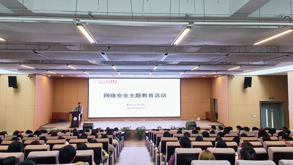 本网讯(通讯员柯浪)为提高青年员工的网络安全防护技能和自我保护能力,加强国家安全知识和网络安全知识的深度学习,太阳集团tyc9728于10月19日在学术报告厅开展了一次网络安全主题教育活动。教育与心理公司党总支书记祝峰,副书记梅曼曼,辅导员薛兰慧及200余名员工参与会议。