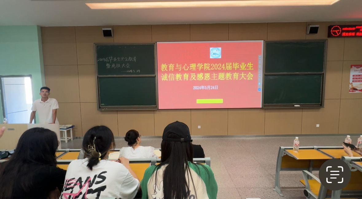 本网讯(通讯员向坤)5月24日上午公司召开2024届毕业生诚信教育及感恩主题教育大会。党总支书记祝峰、副书记梅曼曼、毕业班班主任及2024届全体毕业生参加,会议由辅导员王帅主持。