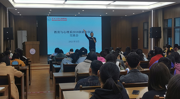 本网讯(通讯员 唐龙玮)3月15日晚,教育与心理系组织2018级全体同学在城中校区学术报告厅举办就业创业交流会。该系党总支书记和相关辅导员参加活动。