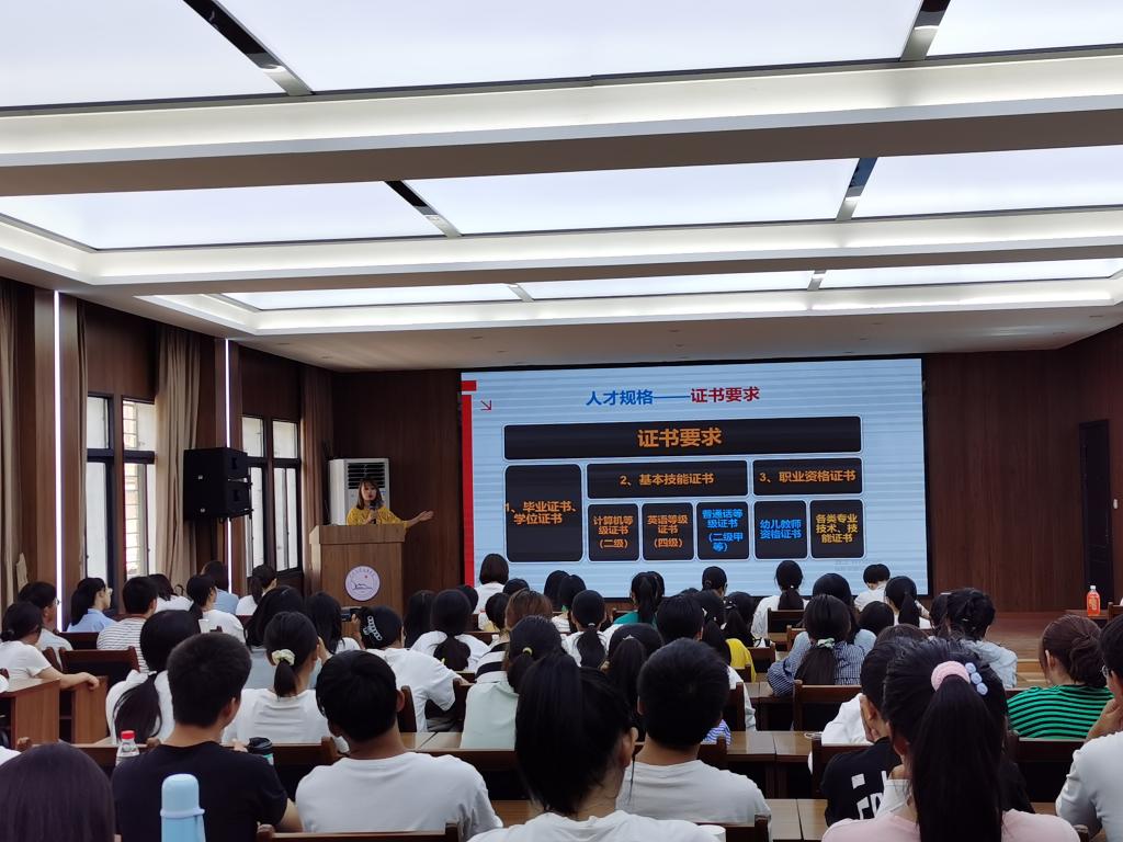 本网讯(通讯员何祥苗)9月29 日,教育与心理系在3教408学术报告厅开展了2021级学前教育专业新生专业教育,系主任徐霄、副主任马君莉、学前教育专业全体专任教师、班主任、辅导员和全体大一新生参加大会。