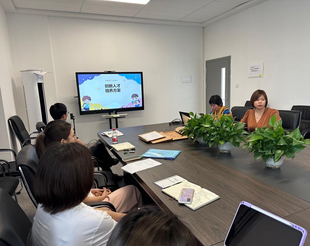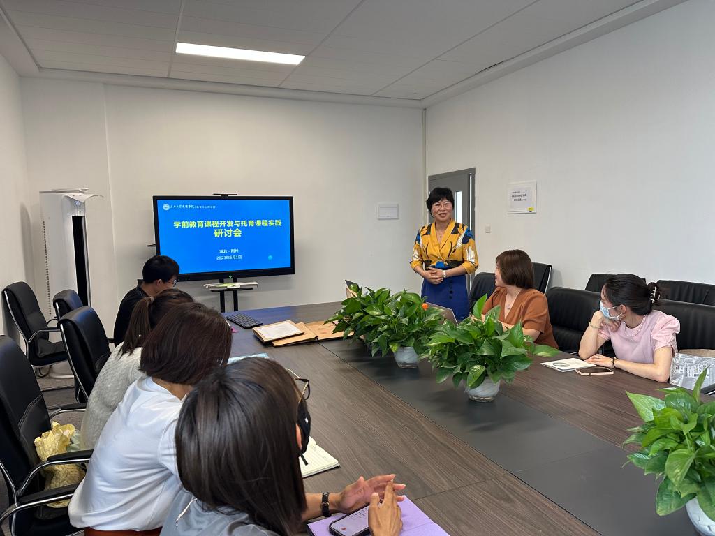 本网讯(通讯员吴越)6月1日下午,广东省教师继续教育学会常务理事、广东省教育督导学会学前专家委员会秘书长万兰芬,深圳国匠云职业教育科技有限公司教育产业研究院副经理严乔方来公司就学前教育课程开发和托育课程实践进行交流。活动由太阳集团tyc9728经理徐霄主持,全体教师参会。