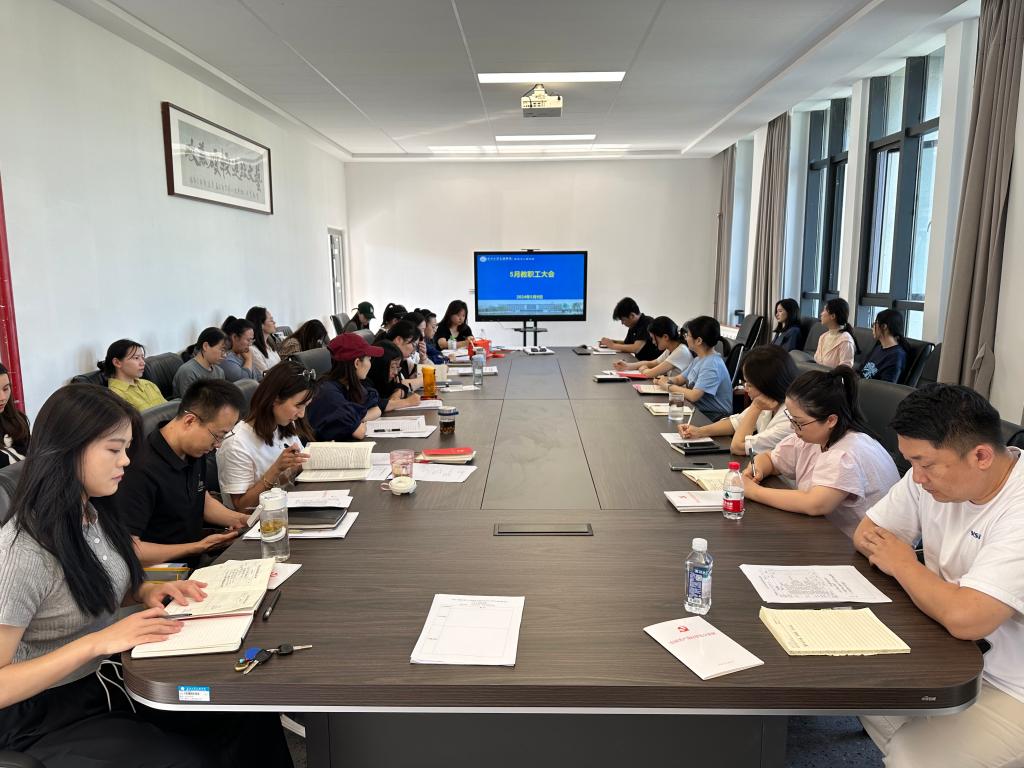 (通讯员 图文/刘娅)5月9日下午,太阳集团tyc9728在教学楼JY304会议室召开5月全体教职工大会,经理徐霄主持会议。