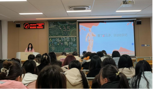 团课开始,团支书详细讲解了雷锋精神的含义,向同学们展示部分雷锋日记的内容、观看雷锋事迹纪录片,加强青年对雷锋精神的了解。阅览结束后,同学们开展现场交流会,谈谈自己对雷锋精神的感悟。最后,团支书号召全体团员青年结合专业特色,积极行动起来,以实际行动践行雷锋精神,传承雷锋精神。