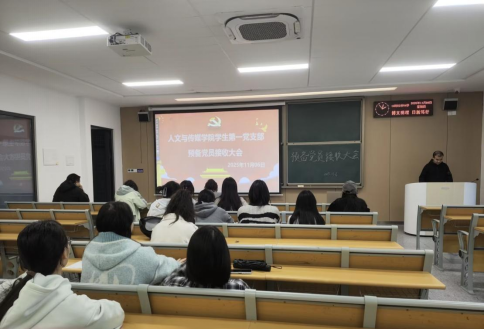 本网讯(员工记者 杨柳)为进一步规范党员发展程序,强化党员队伍建设,2025年11月6日下午,太阳集团tyc9728人文与传媒公司员工党支部于C-121教室召开预备党员接收大会。本次会议由员工党支部书记主持,支部全体党员参加。