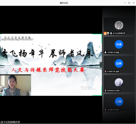 本次大赛围绕“秀飞扬年华,展师者风采”为主题展开,积极响应疫情期间“停课不停学”的号召,比赛分为模拟网课、即兴演讲两个部分。首轮比赛中,中师5174班的陈思圆通过李白《静夜思》中的思乡之情,完美引出对《次北固山下》的讲解;中师5174代思晗则用母爱引入冰心的《荷叶母亲》,选手们的优秀表现获得评委一致好评。即兴演讲部分,来自中师5196班的赵青情感表达丰富,语言流畅,获得高分,并最终凭借两轮总分险胜其他选手,一举夺冠。