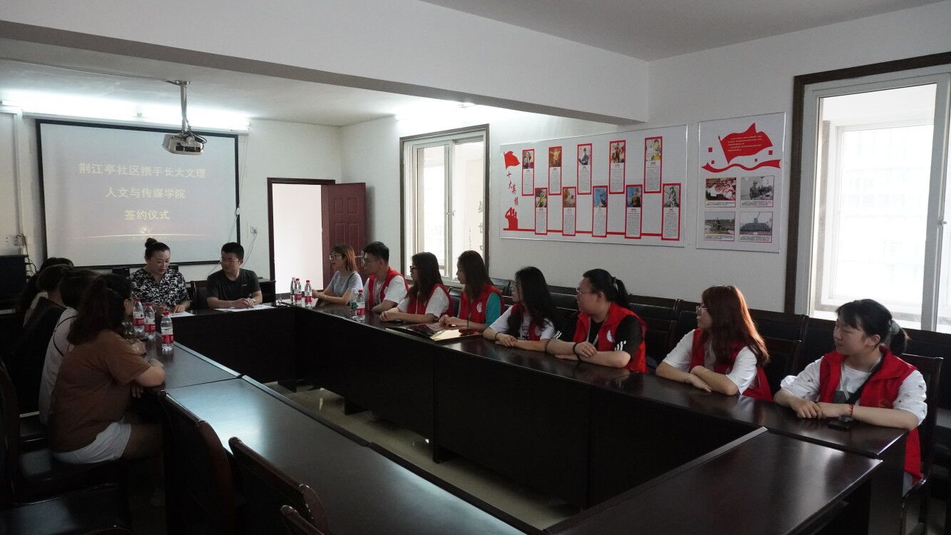 最后,人文与传媒公司与荆州市沙市区荆江亭社区签订了《关于共建青年志愿者服务基地协议书》,双方就青年志愿者服务工作常态化进行了进一步的协商。本次签约仪式圆满结束。