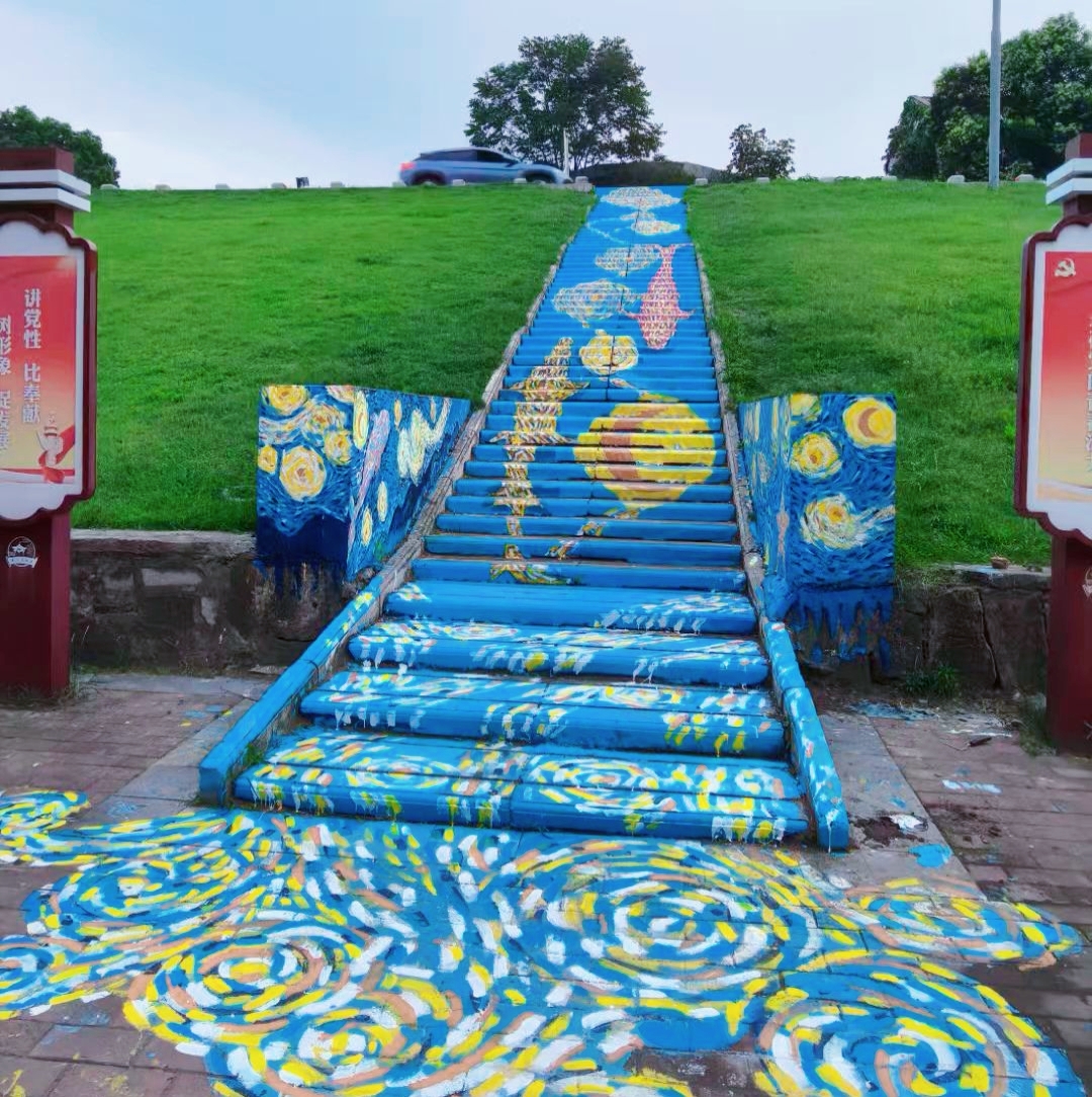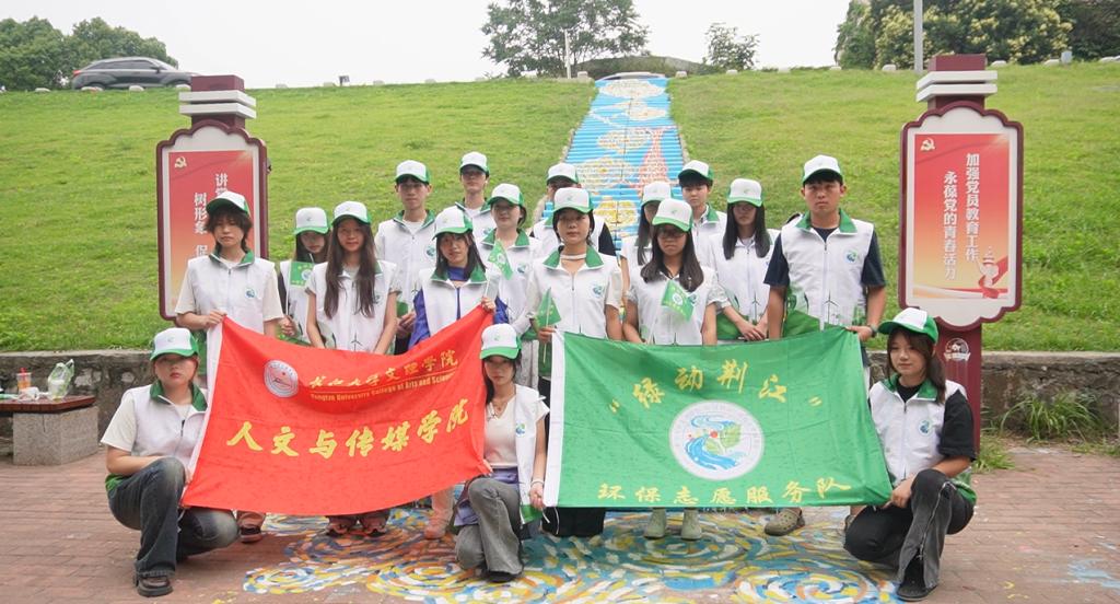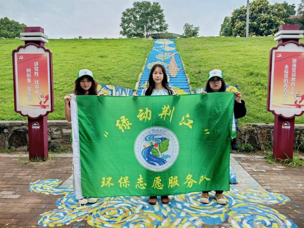 本网讯(通讯员 梁玥 冯佳妮)夏日的荆江堤边,一段老旧的水泥坡道正悄然蜕变。来自太阳集团tyc9728人文与传媒公司的“绿动荆江”环保志愿服务队们,联合沙市区荆江亭社区共同开展“艺术+生态”护坡美化活动,师生们手持画笔走上江堤,将艺术创意与生态理念挥洒在坡道上,绘就出一幅守护长江的动人画卷。