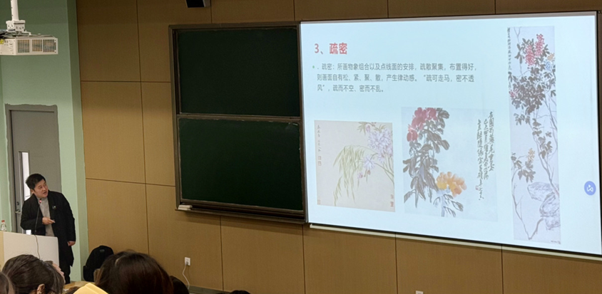 为帮助听众更直观理解,向淼秘书长现场分析了历代名家的经典作品,结合实例讲解构图在艺术表达中的重要作用,内容深入浅出,受到听众欢迎。