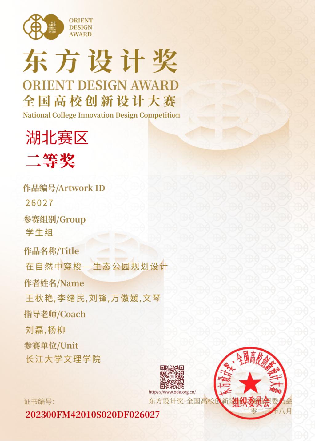 (通讯员 王秋艳)近日,第九届“东方设计奖·全国高校创新设计大赛”获奖结果公布。经过校赛选拔、省赛评审、国赛终审等多个环节的激烈角逐,由风景园林专业员工组成的员工代表团队有8项作品获奖。