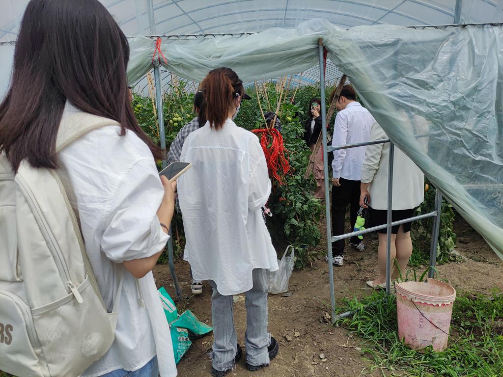 接着,团队前往松柏村农产品种植产业基地,了解西红柿大棚特色产业发展现状,通过与种植户的沟通交流,对特色产业大棚养殖的经济收益进行分析,并共同探讨可持续发展的思路。
