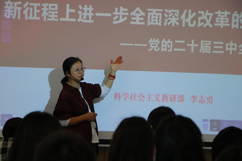 在教工支部主题党日活动中,全体党员重温入党誓词、交纳本月党费、集体诵读《中国共产党章程》,公司党总支邀请马克思主义公司佘时珍同志为公司教工支部、员工支部全体党员以及公司各班级团支书集中讲授学习党的二十届三中全会精神专题党课。课后,与会党员围绕深入学习领会党的二十届三中全会精神,就如何落实省十二届七次全会部署要求,结合学习工作实际,交流研讨心得体会。