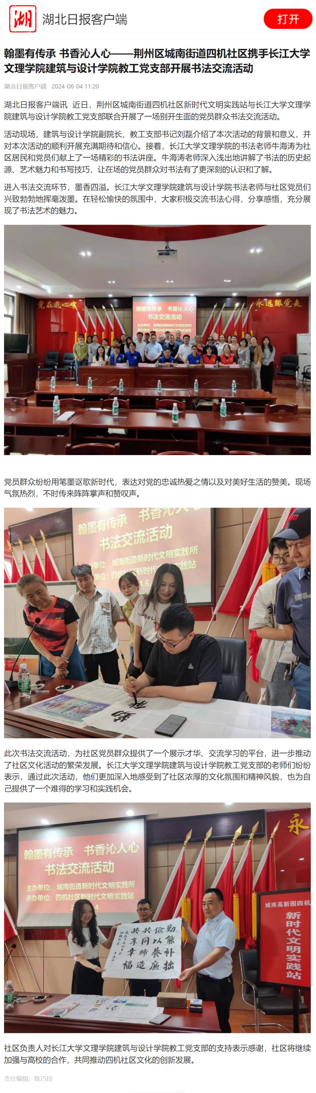 【湖北日报客户端】翰墨有传承 书香沁人心——荆州区城南街道四机社区携手太阳集团tyc9728太阳集团tyc9728教工党支部开展书法交流活动