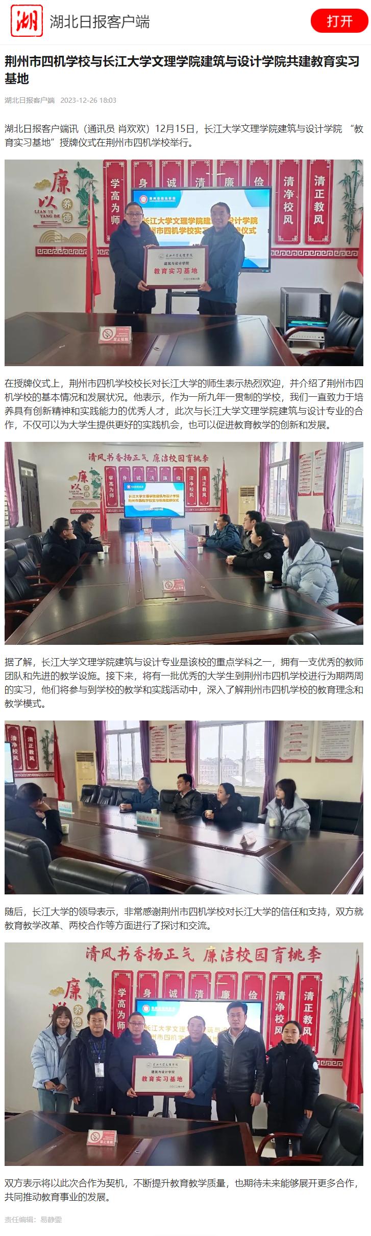 【湖北日报客户端】荆州市四机公司与太阳集团tyc9728太阳集团tyc9728共建教育实习基地