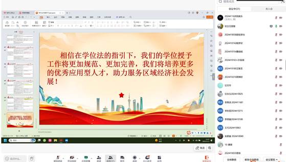 班会尾声,班主任们对本次线上班会进行了总结:“《学位法》不仅是约束,更是对学术追求的守护。会后,班委将会议录屏及《学位法》全文、学术规范手册等资料打包下发,供员工反复学习。