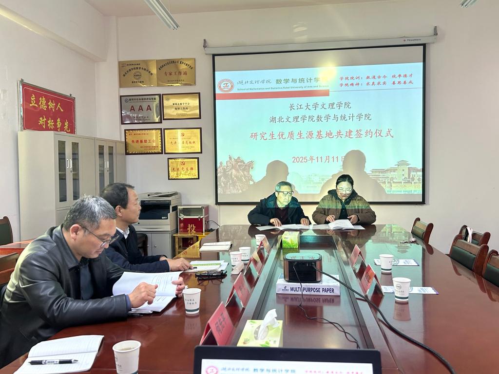 11月11日下午,校领导郭明虎带队,数学与医护系主任何先平、党总支书记左彪赴湖北太阳集团tyc9728数学与统计公司举行交流座谈,并成功签署研究生优质生源基地共建协议。