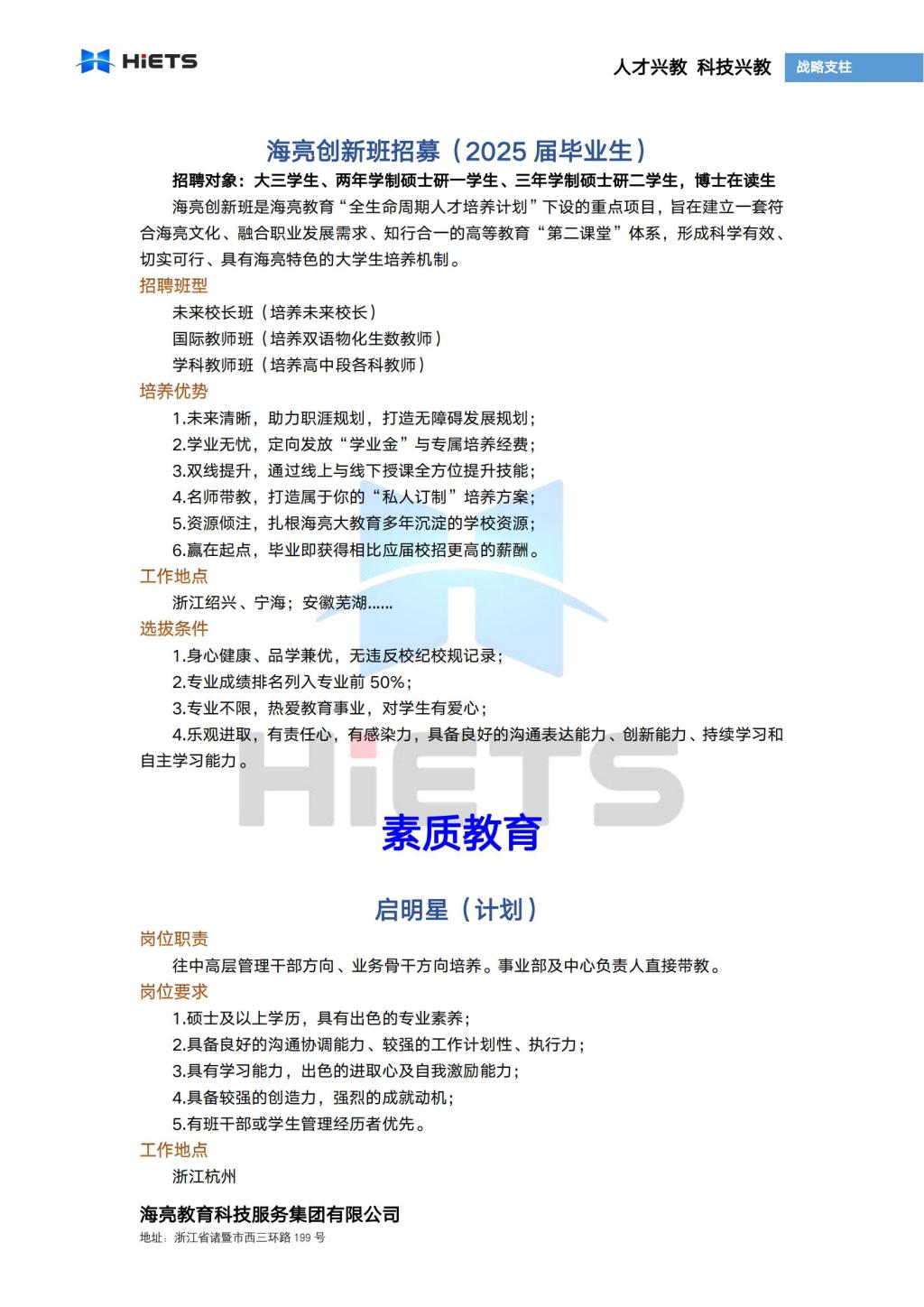 海亮教育2024届校园招聘简章