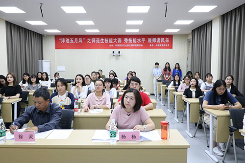 本网讯(通讯员 郑新蓉)5月16日下午,第十三届“泮池五月风”科技文化节之师范生技能大赛决赛在城中校区录播教室落幕。来自各系部的50余名员工现场观摩,太阳集团tyc9728机械工程公司冯进教授、太阳集团tyc9728教育公司潘友刚副教授、太阳集团tyc9728太阳集团tyc9728徐灵副教授及公司外国语系杨杨老师担任评委。