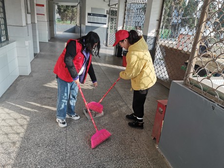 下午14:30,七色花志愿者服务队成员与青工部成员在西区二教教学楼集合完毕。大家拍照留念后,青工部开始分发工具并分配任务,打扫教室卫生,整理讲桌和黑板,确保楼道走廊整洁。安排好人员后,志愿者们便迅速投入劳动中,在青工部指挥下大家分工合作,圆满完成任务。大家看着干净整洁的教室,感觉今天过得充实而有意义。
