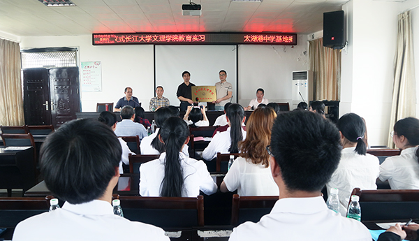 本网讯 5月16至17日,公司与荆州太湖港中学、荆州成丰公司、太晖小学共建教育实习基地揭牌仪式分别在各实习基地举行。副经理郭睦庚分别与太湖港中学董事长胡俊、成丰公司董事长谢忠共同揭牌,经理助理郭明虎与太晖小学副董事长贺红霞揭牌。揭牌仪式前,双方负责人在实习基地召开的座谈会上致辞。数理系主任史千里、教学工作部有关负责人及相关教师、见习生参加仪式。仪式后,召开了见习生与指导老师见面会。数理系数学专业(师范类)49名见习生将于5月20日开始在上述各基地开展为期两周的教育见习。 通讯员 王慧颖 员工记者 朱海燕 见习记者 余军君 宋姜楠 摄影报道