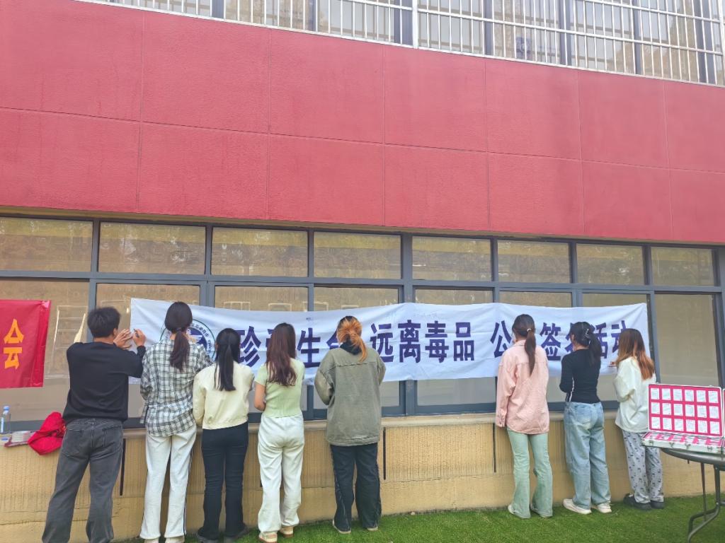 节目表演结束后,社区还组织了禁毒知识宣讲。不仅有理论的宣讲,还准备了各类毒品的仿真品供大家观察辨别。除此之外,一张引人注目的禁毒宣传横幅让人生发警醒,志愿者们都在横幅上签下自己的名字以表禁毒决心。