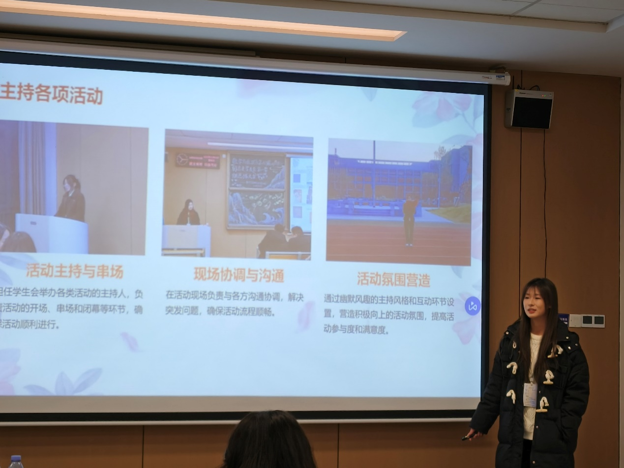 最后,副主席赵南燕上台发言。对员工会组织架构与职能进行了详细的讲解,此次讲解可以使员工会的全体成员更好了解员工会的各个部门,并且便于后续工作的开展。同时副主席也表达了对员工会全体成员的殷切期盼,希望大家在未来的工作中能表现的更加出色,塑造更具活力与影响力的员工组织形象。