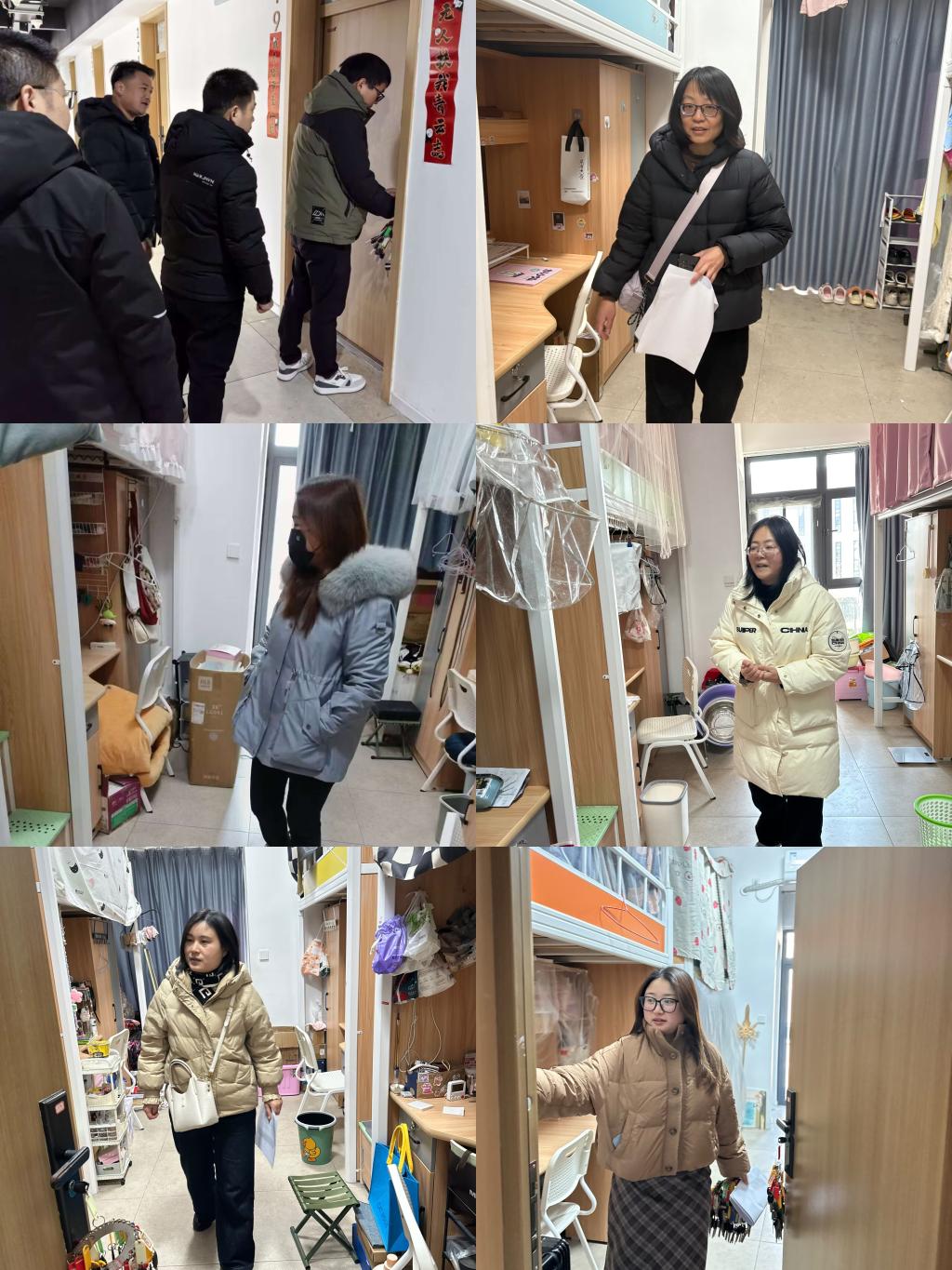 (本网讯)寒假临近,为确保员工离校后的宿舍安全,1 月 10 日上午,数学与医护系开展了离校寝室安全大检查行动。老师们在宿舍区集合,由系领导带队,各班主任、辅导员全员参与,组成多个检查小组奔赴员工宿舍。