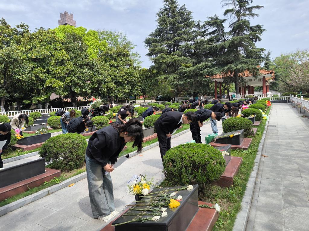 本网讯(见习记者王诗琪)为缅怀革命先烈,弘扬家国情怀,4月7日上午,数学与医护系组织多名志愿者前往革命烈士陵园开展了清明扫墓活动,焚香献花祭先辈,传承精神启后人。