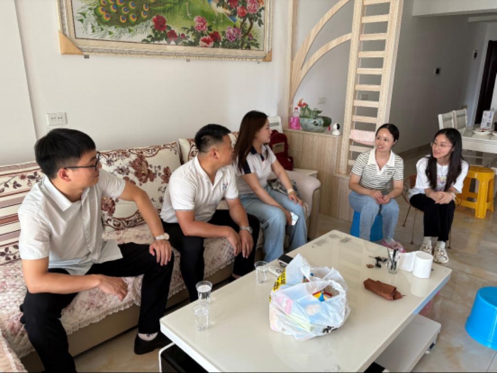 (本网讯)为持续深化“三全育人”内涵建设,凝聚家校协同育人合力,7月14日,数学与医护系开启了今年的暑期家访活动,系党总支书记左彪带队,副书记燕梦蝶、辅导员宋静静和聂志一同前往2023级董同学家中进行家访,送去公司的关怀与温暖,并就其学业发展与未来规划展开深入交流。