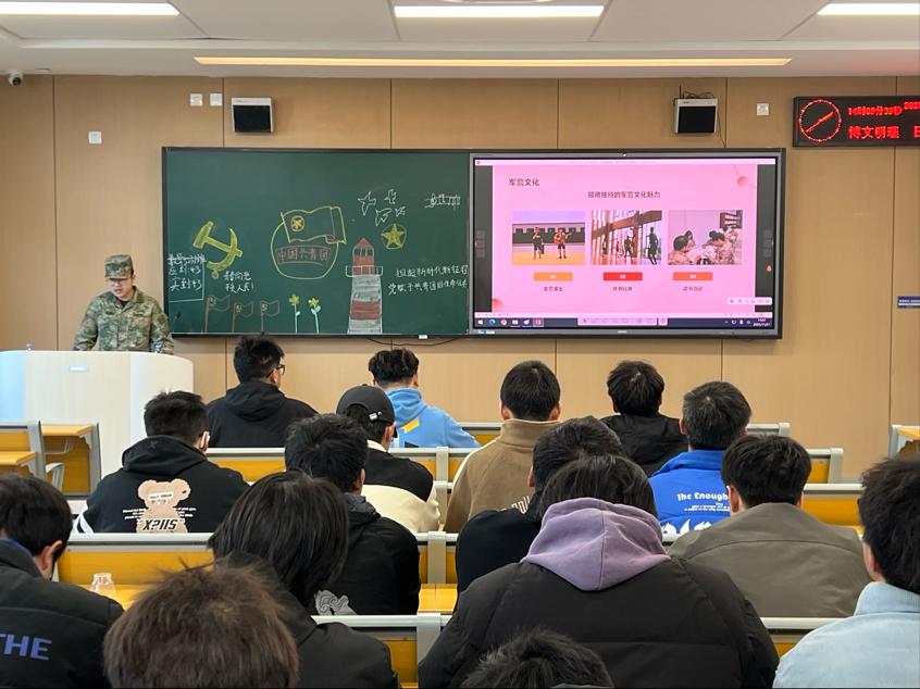 本网讯(见习记者胡尔豪)为激发青年爱国情怀,明晰参军报国路径,我系于12月27日14:00在A-101开展老员工征兵政策宣讲会,本次会议由退伍士兵宋坤主讲,2024级全体男生参会。