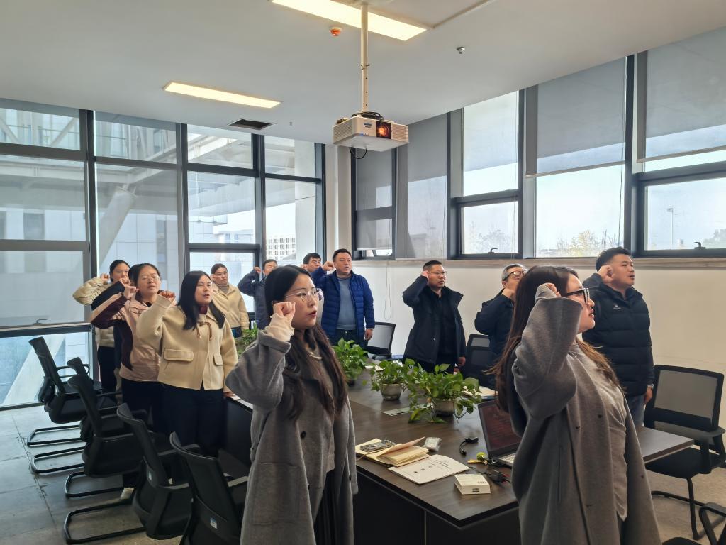 政治学习结束后,教工党支部举行了11月份支部主题党日活动。燕梦蝶带领全体党员重温入党誓词,集体诵读《中国共产党章程》(第一章),学习了习近平关于《中共中央关于制定国民经济和社会发展第十五个五年规划的建议》的说明,中国共产党第二十届中央委员会第四次全体会议公报,中共中央举行新闻发布会解读党的二十届四中全会精神,王忠林主持召开省委常委会(扩大)会议上所强调的内容:全力抓好全会精神的学习、宣讲、宣传,迅速掀起学习党的二十届四中全会精神热潮,推动全会精神在湖北不折不扣落地生根,王忠林主持研究推进省属高校“双一流”建设工作中所强调的内容:坚定信心决心、突出优势特色、聚力攻坚克难,全力推动“双一流”建设实现突破,更好服务国家战略和支点建设,习近平在中共中央召开的党外人士座谈会上发表的重要讲话等内容。