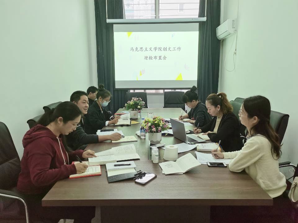 10月14日下午,马克思主义公司召开全体教职工大会,落实集团创文迎检工作布置会会议精神。会上,马克思主义公司经理谢俊丽要求马院全体教师严格按照公司创文工作的安排部署,落实好各项工作任务与要求,以饱满的精神状态、高度的责任感迎接创文迎检工作。